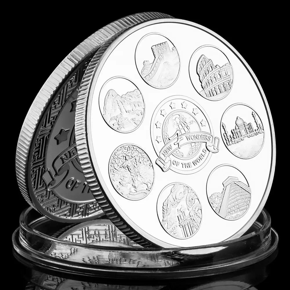 7 Wonders Silver Plated Commemorative Souvenir Coin Set