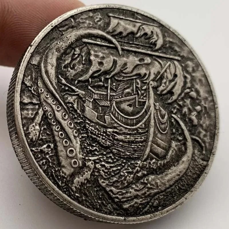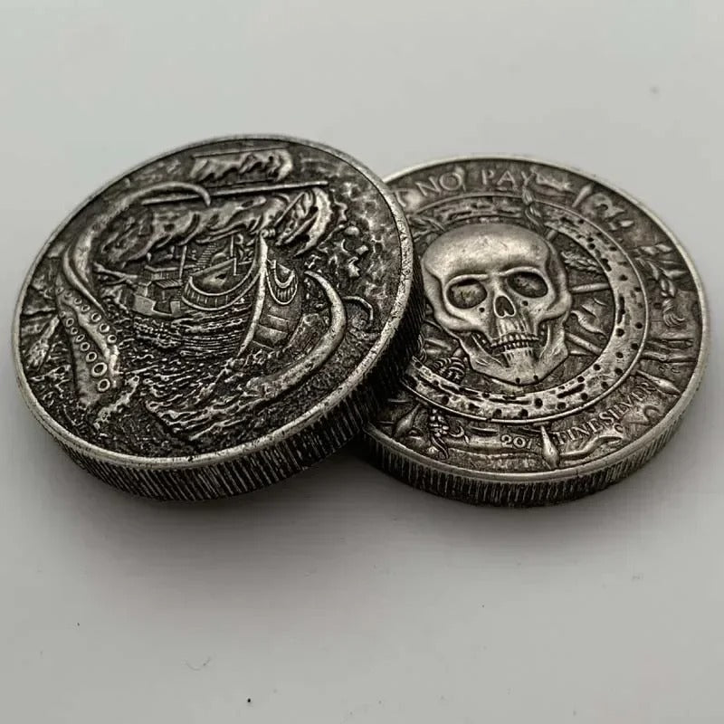 Discover the allure of the high seas with this Antique Pirate Skull Coin, featuring a detailed cameo design of a skull, octopus, and sailing motifs. Perfect for collectors, history buffs, or nautical enthusiasts, this commemorative coin captures the spirit of adventure and mystery. Crafted with intricate detail, it makes a unique decorative piece, collectible treasure, or an unforgettable gift for anyone who loves maritime lore and vintage charm.